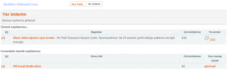 ?yeler istedi?i sayfay? yada forum konusunu yer imlerine ekleyebilir