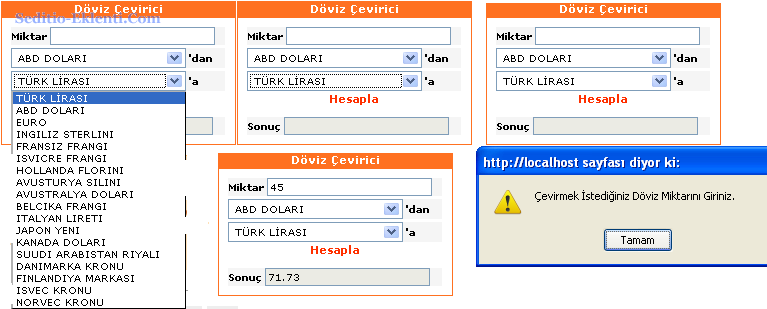 Ajax ve Javascript ile Hazşrlamşş oldugum Dşviz Kuru şevirici